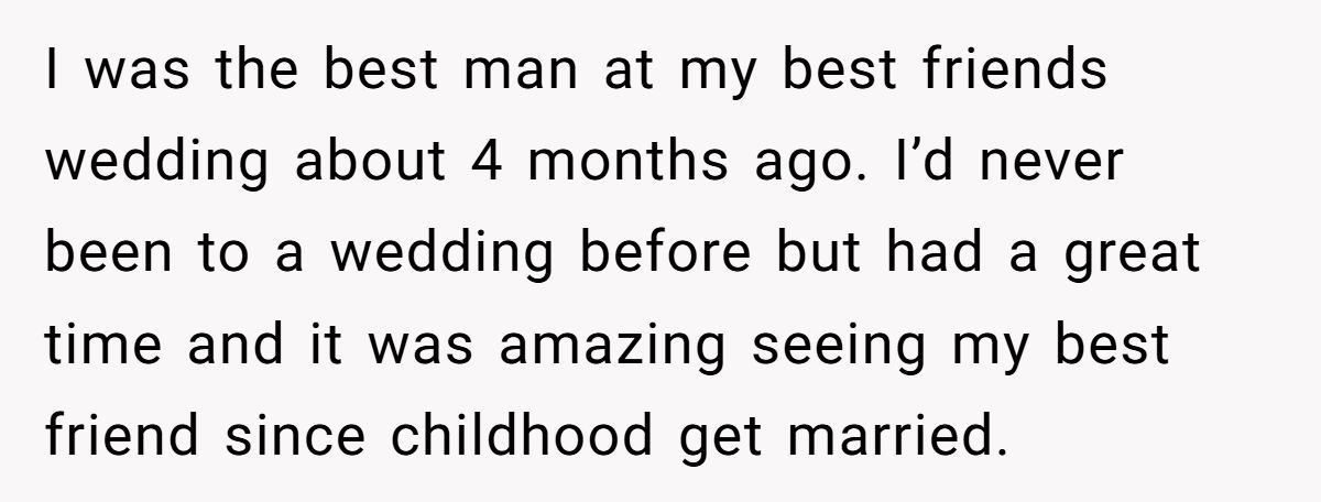 This Redditor, already nervous about his best man speech, leaned hard into the open bar, leading to a tipsy proposal that turned his best friend’s wedding into his own personal rom-com gone wrong.