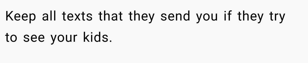 Keep all texts that they send you if they try to see your kids.An anonymous commenter affirms the original poster (OP) as Not The Asshole (NTA), agreeing that cutting off the 15-year-old nephew was justified given his judgmental behavior toward a young child, validating OP’s decision.