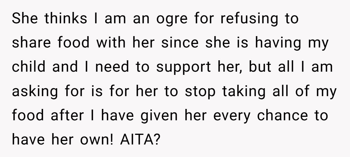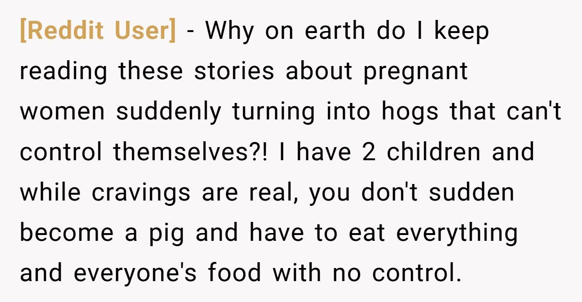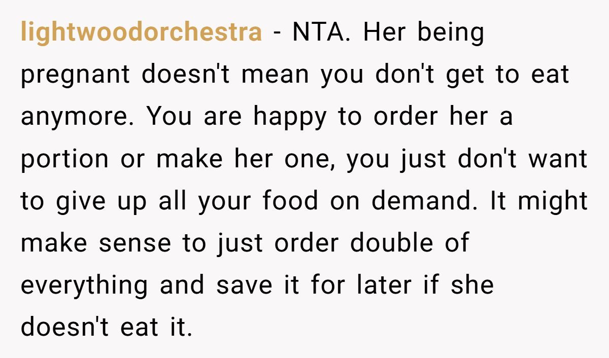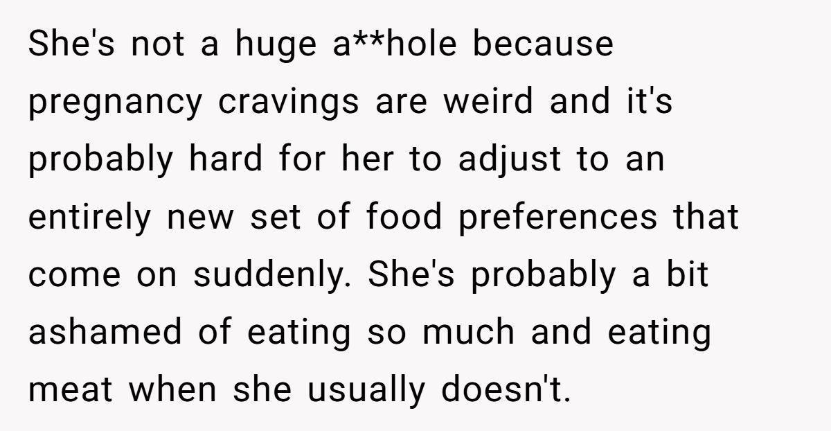 Many Redditors say NTA—her behavior may stem from deeper food issues, but pregnancy isn’t a free pass to ignore boundaries or manners.
