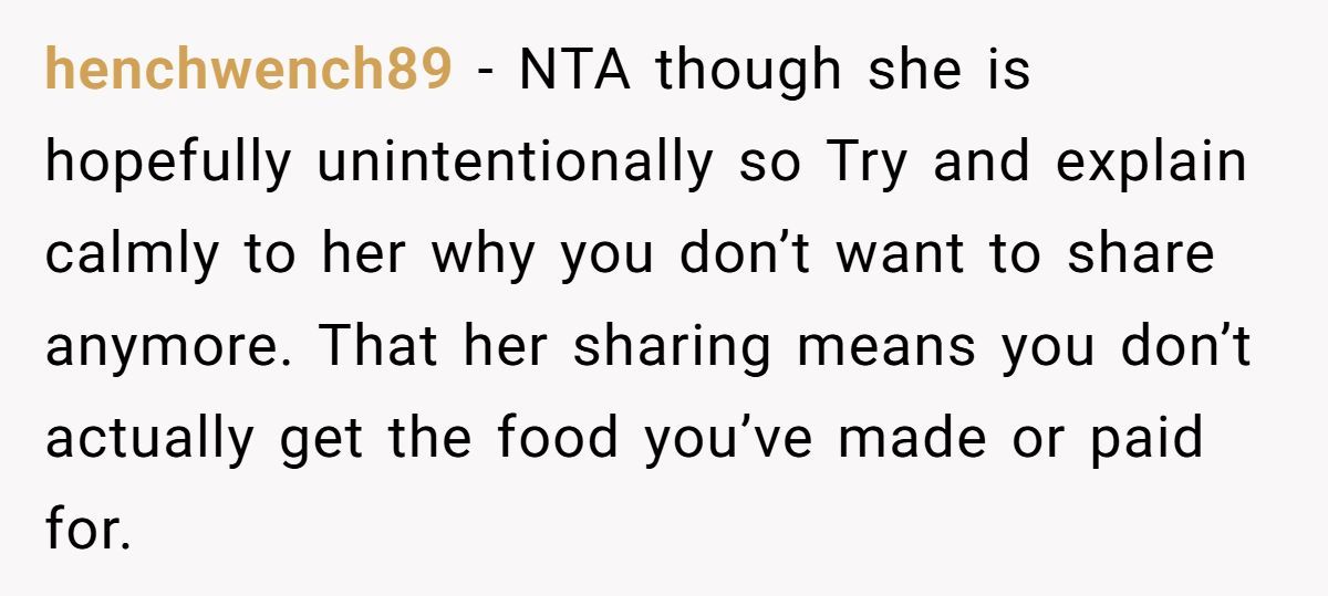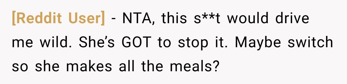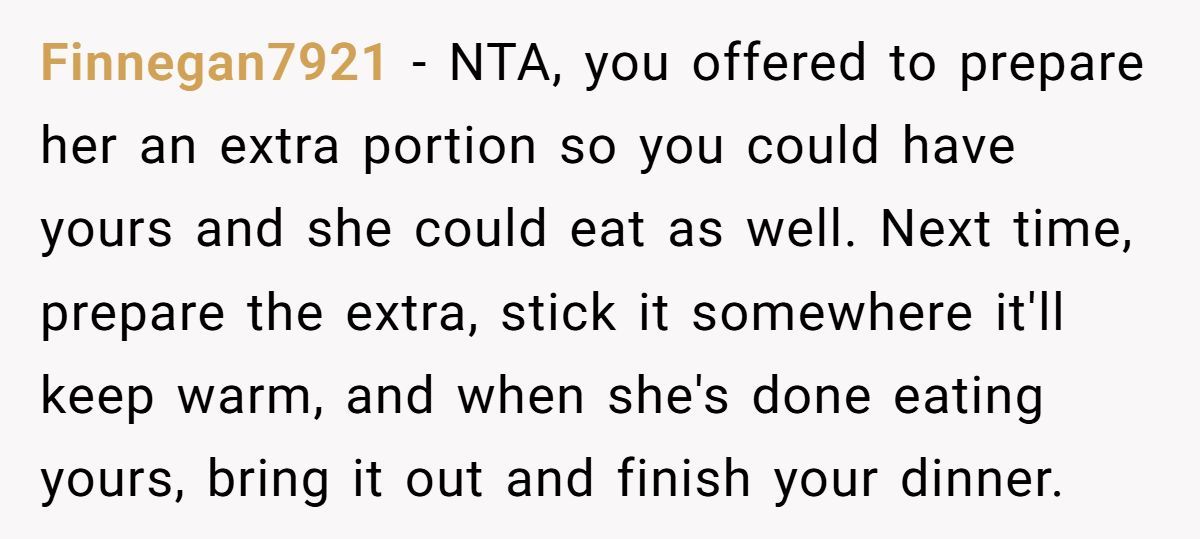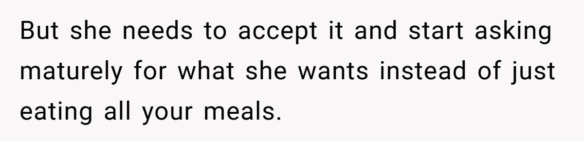 Redditors agreed he’s not the AH—if she keeps eating his meals, maybe it’s time she starts cooking instead.