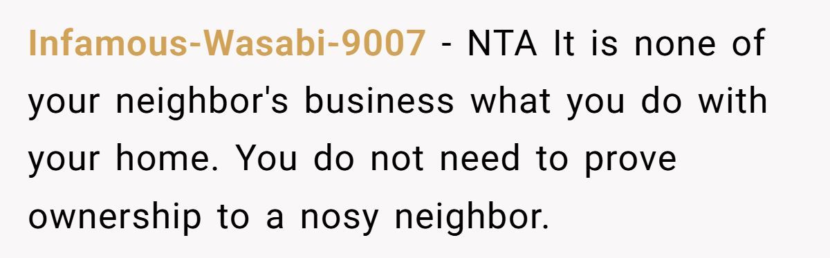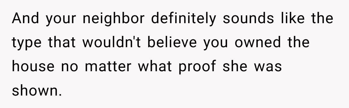 Jane’s skepticism likely stems from generational stereotypes—homeownership at 20 is rare, with only 3% of U.S. homeowners under 25, according to a 2023 National Association of Realtors report. Her disbelief doesn’t justify her overstepping, though. The Redditor’s frustration is understandable; nobody wants their milestone questioned by a nosy neighbor.
