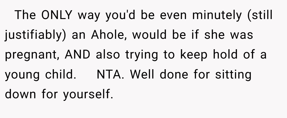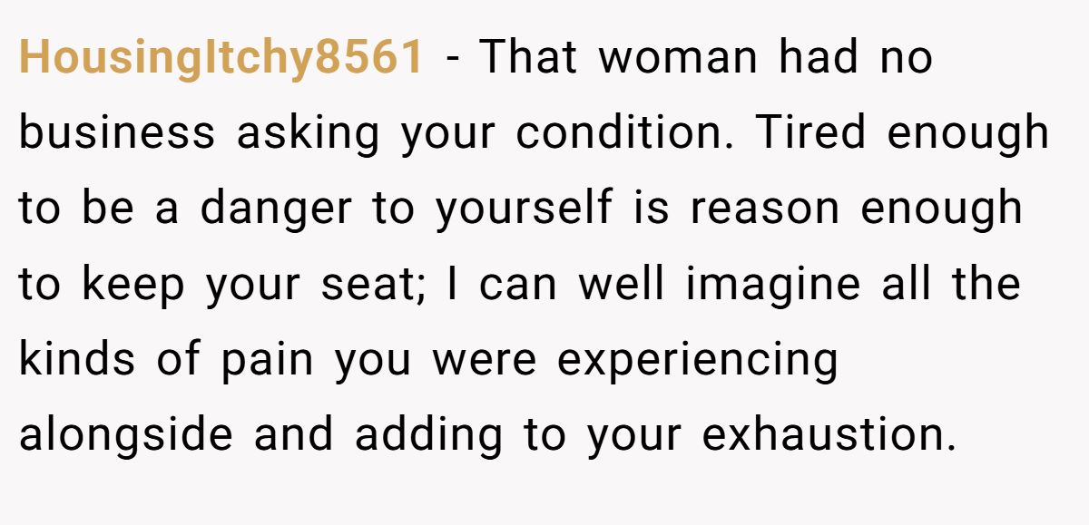 The deeper truth? Public spaces often pit vulnerable people against each other, forcing impossible choices. Teaching empathy under pressure is tough but vital: a kind word can defuse a war. Reddit’s split, but what’s your call: should exhaustion outweigh courtesy, or does pregnancy always take the seat?