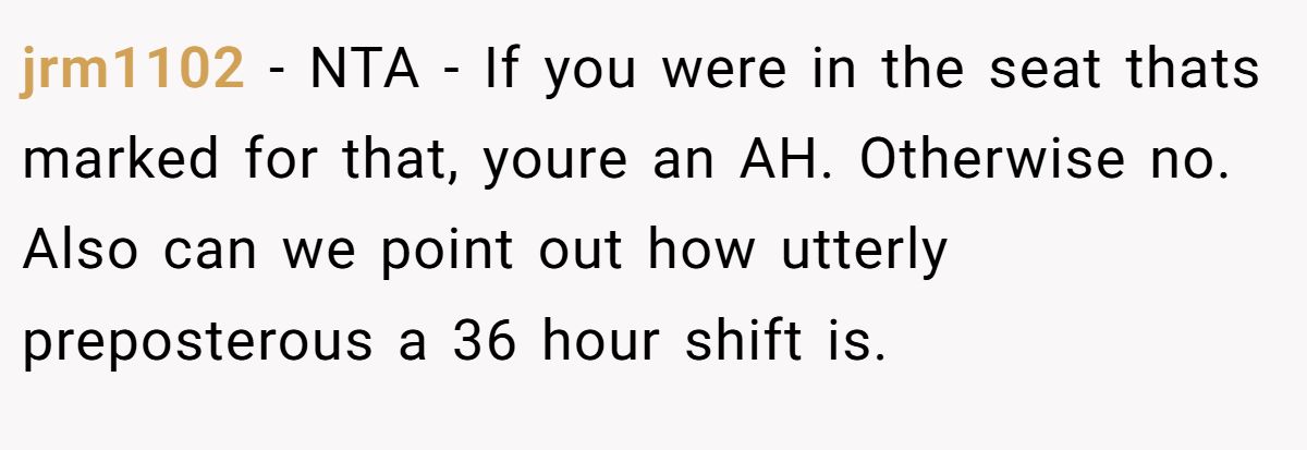 This isn’t just a seat dispute: it’s a moral battlefield where survival clashes with social norms. The Redditor’s exhaustion was no mere fatigue: it was a dangerous haze, with a 2022 Journal of General Internal Medicine study noting that 70% of medical residents on extended shifts risk near-collapse episodes, increasing chances of falls or fainting.
