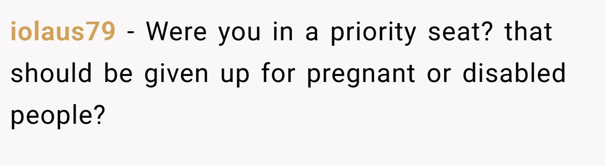 Iolaus79 questions if the seat was a priority one reserved for pregnant or disabled individuals, implying a potential obligation to yield.