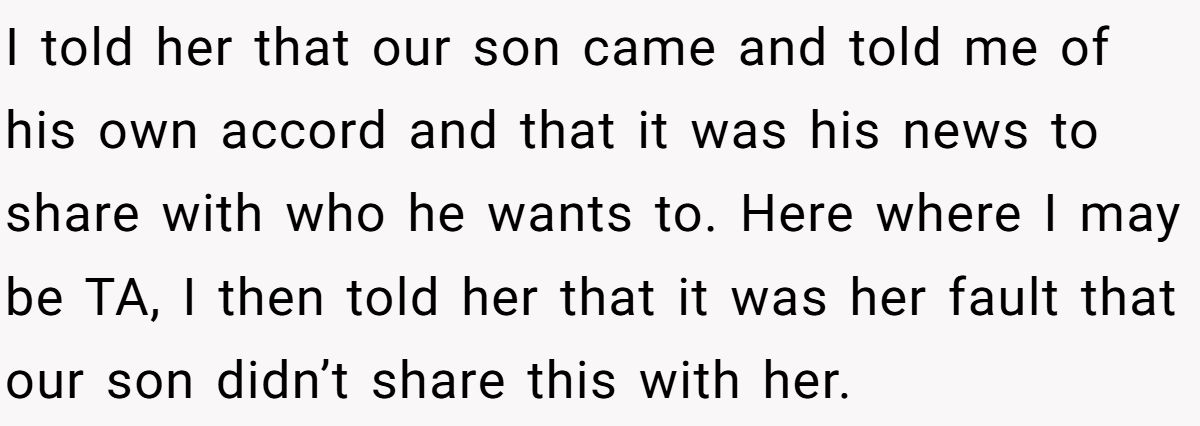 ![A Redditor’s Divorce Drama: Was He Wrong for Blaming His Wife for Their Son’s Distance? [Reddit User] − NTA. 1st... The biggest congratulations to your son! I cried reading that part, idk him or you but I am proud of him and excited for him! 2nd... NTA maybe it was a bit harsh but the truth hurts sometimes ya know? 3rd... hes 17?](https://dailyhighlight.com/wp-content/uploads/2025/07/231241-27.jpg)