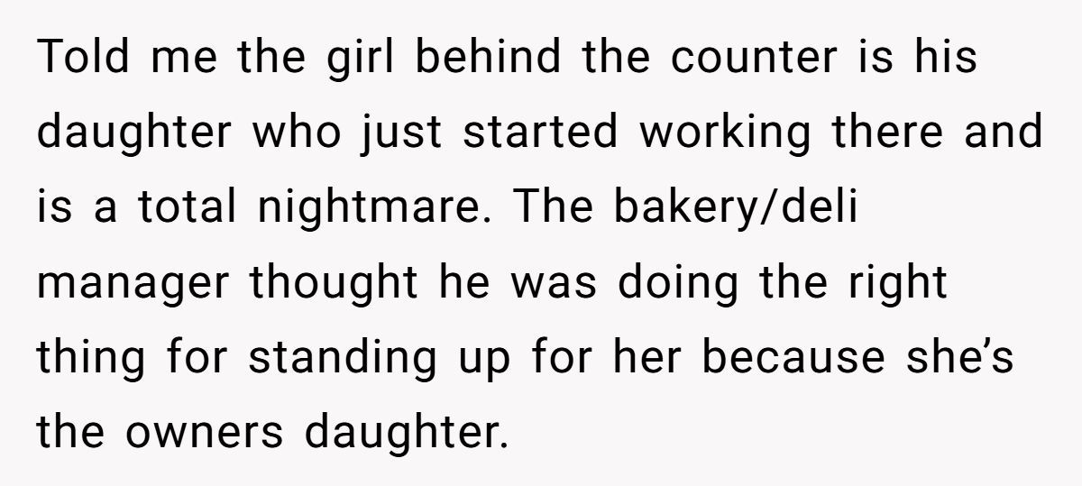 Even more puzzling? The manager later revealed the bagel-loving employee was the owner’s daughter. Yikes. Nepotism and customer service rarely mix well, especially when there’s a hungry kid involved.