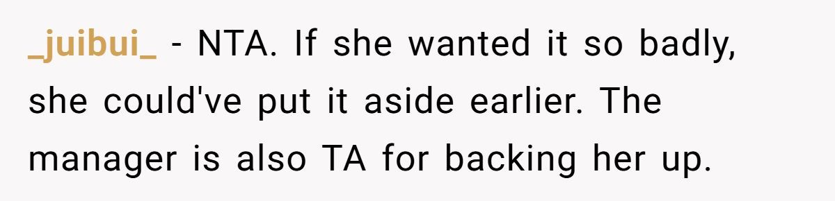 The Redditors agreed the poster wasn’t the asshole—if the employee wanted the item, she should’ve set it aside instead of leaving it out.