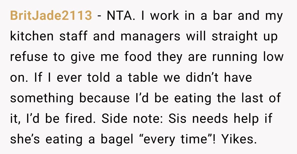 In hospitality, the perception of fairness and professionalism is everything. Even a minor incident like this can derail a guest’s experience, especially when it involves children. The staff could’ve easily avoided conflict by labeling the bagel as reserved or setting it aside privately.