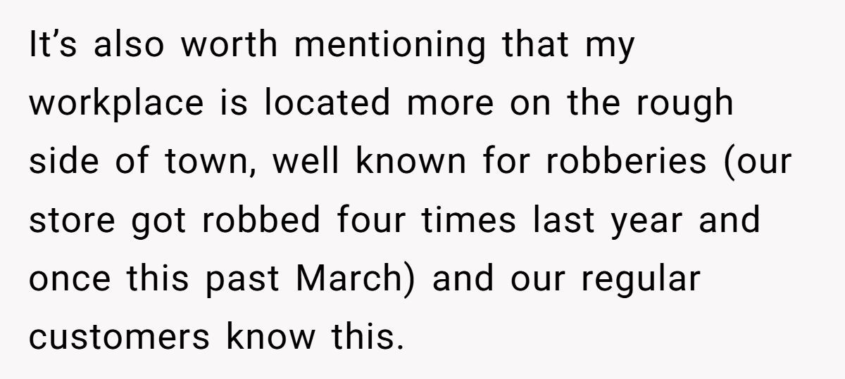 Reddit users didn’t seem to think so. Most agreed she did nothing wrong and that the customer was lashing out because he didn’t want to admit the theft was entirely his fault. Others pointed out how quickly this kind of scenario can spiral: when adults feel powerless, they sometimes redirect their frustration at the most convenient target—even if that target is a teenage employee.
