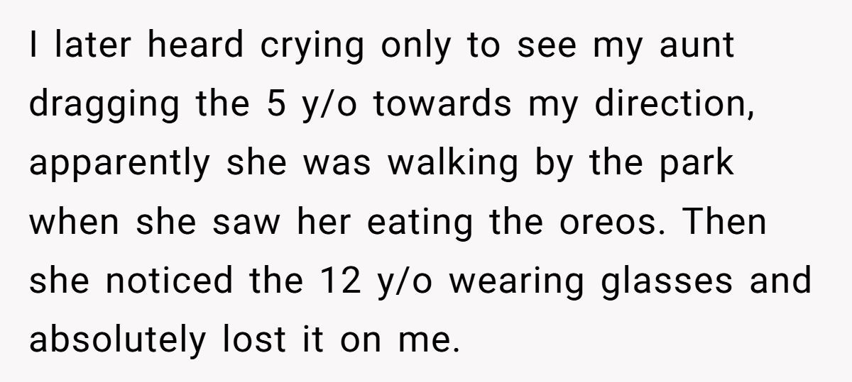 But her aunt wasn’t having it. After spotting the glasses and snacks at the park, she freaked out—snatched the glasses away, yelled, and grounded the Redditor.