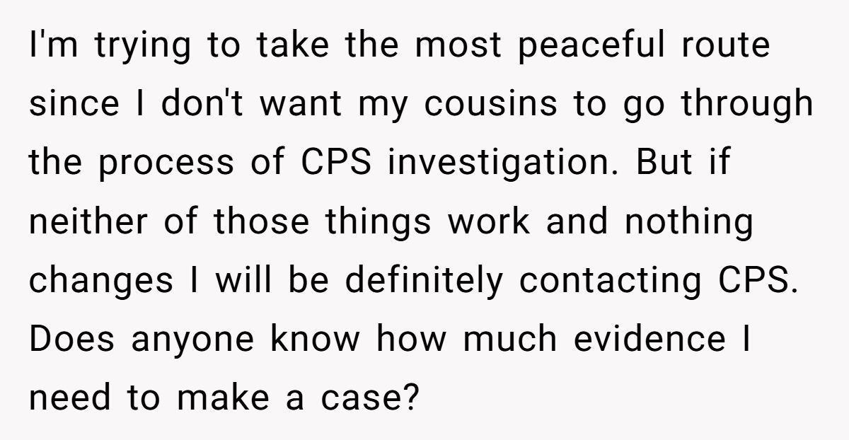 Her next steps—like contacting the kids’ dad and considering a CPS report—aren’t overreactions. They’re potentially life-changing decisions for two kids who may need help.