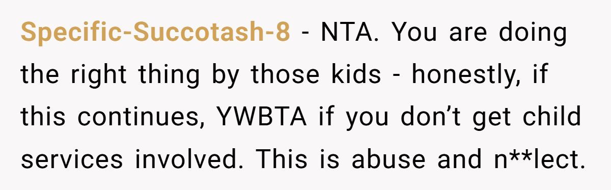 Redditors were clear: NTA, and many said OP should report this as abuse and neglect to protect the kids.