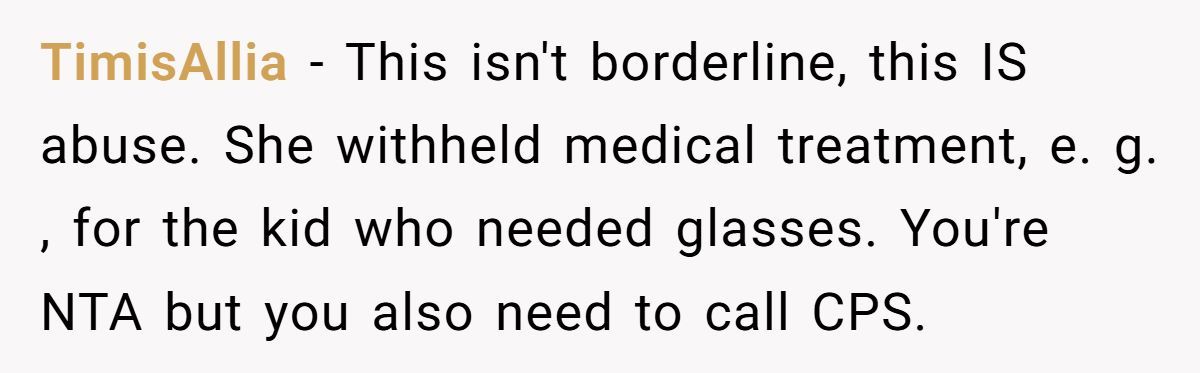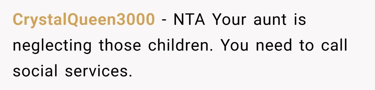 Other redditors overwhelmingly said NTA, urging OP to call CPS or involve the school so the neglect is properly documented and the kids get help.