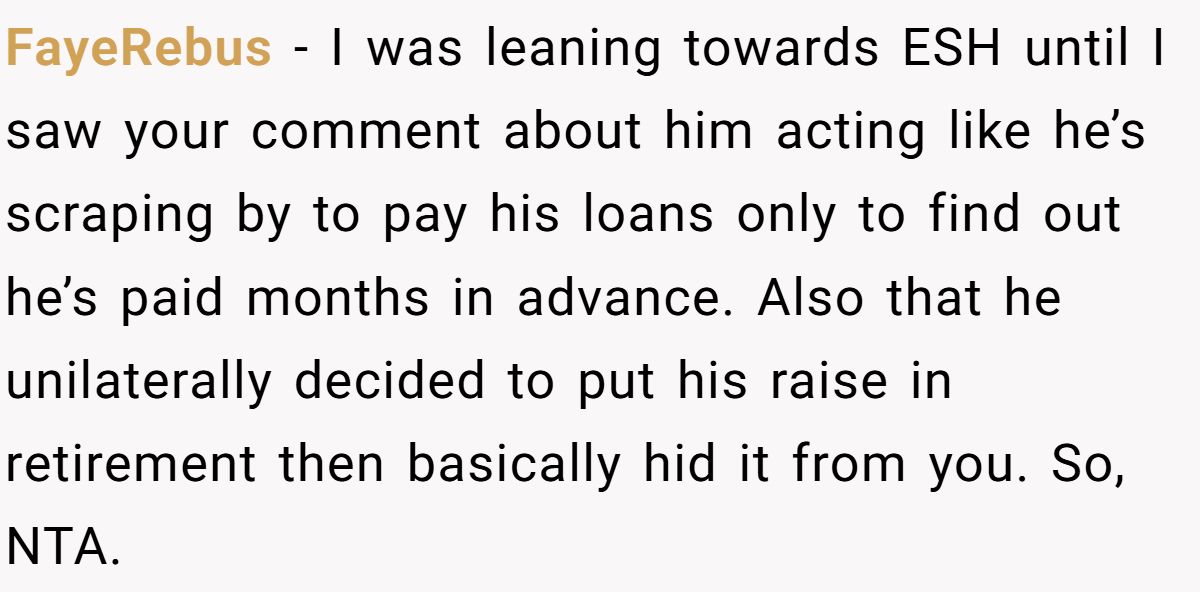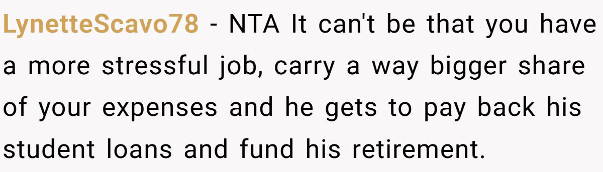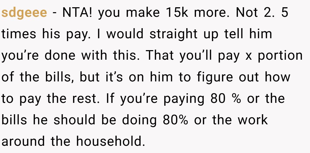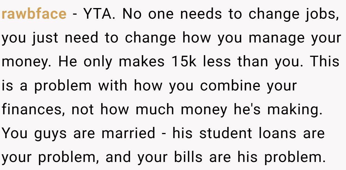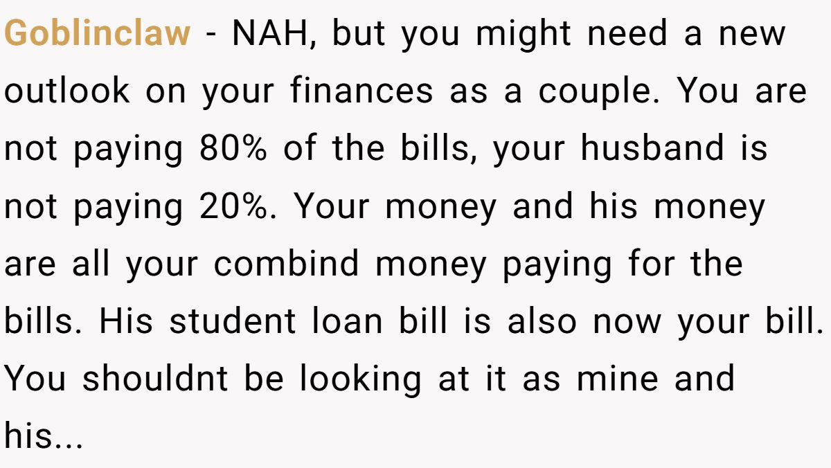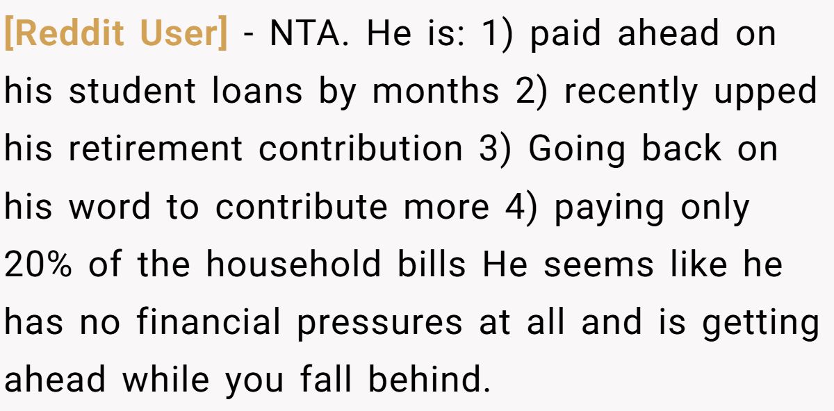 ![A Wife Told Her Husband That He Needed To Earn More Money To Ease Her Stress [Reddit User] − NTA. He is: 1) paid ahead on his student loans by months 2) recently upped his retirement contribution 3) Going back on his word to contribute more 4) paying only 20% of the household bills He seems like he has no financial pressures at all and is getting ahead while you fall behind.](https://dailyhighlight.com/wp-content/uploads/2025/07/45233-18.jpg)