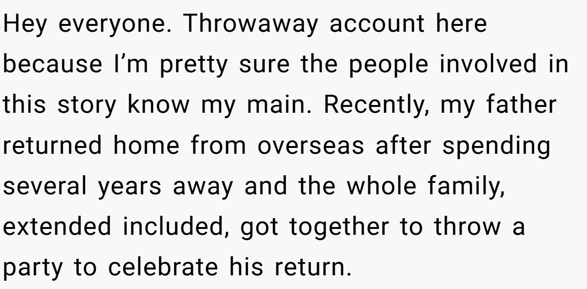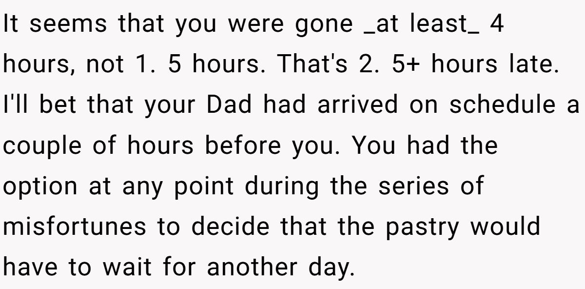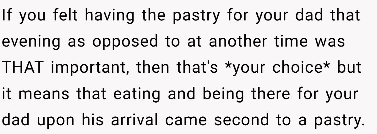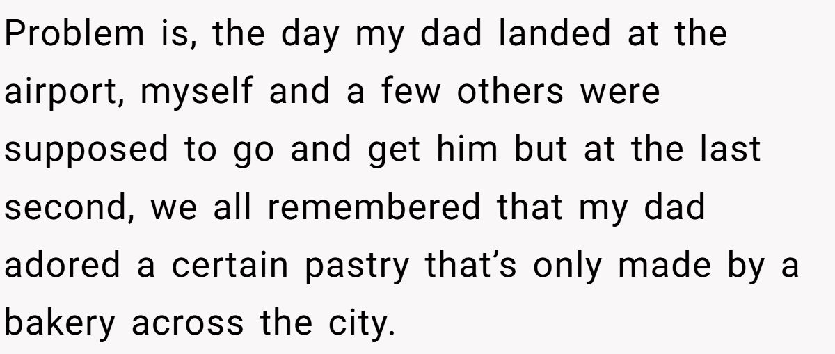 This Redditor’s plans had been set for days. They cleaned the house, hung decorations, and prepared a meal full of nostalgia for their father’s homecoming. As the hour drew near, they left on a short errand to pick up his favorite pastry, hoping it would be the perfect final touch.