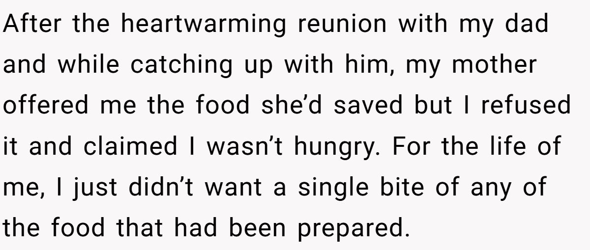 Their refusal to eat anything became the only way to express just how hurt they were. To them, it was never about the food. It was about feeling erased from their own celebration.
