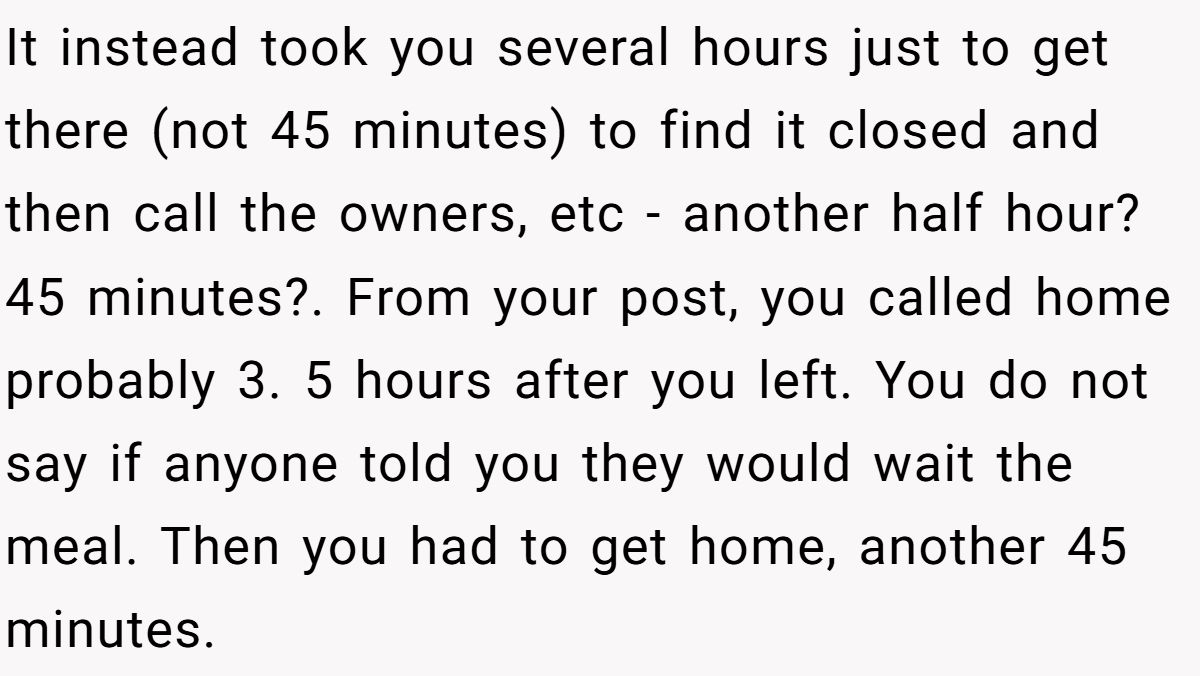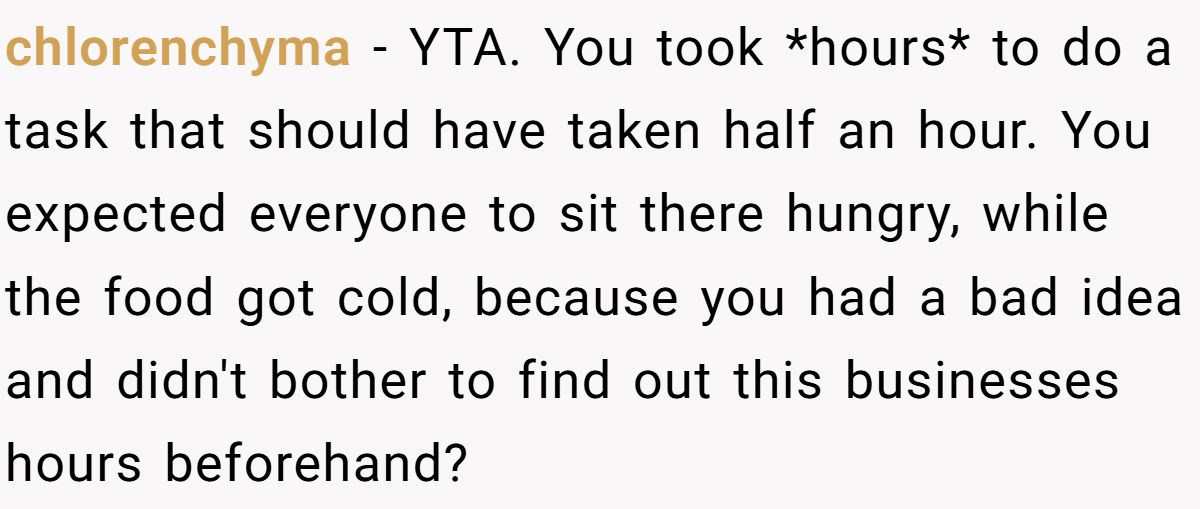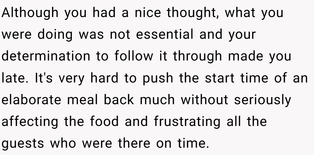 NoiseProvesNothing offered one of the most thoughtful takes, breaking down the chain of events and how they disrupted the entire dinner plan.