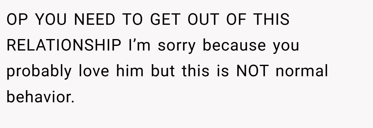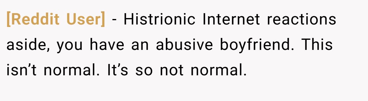 Setting aside exaggerated online reactions, an anonymous commenter underscores the original poster’s (OP) boyfriend’s behavior as undeniably abusive, emphasizing that such actions are far from normal and warrant serious concern.