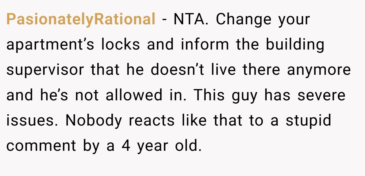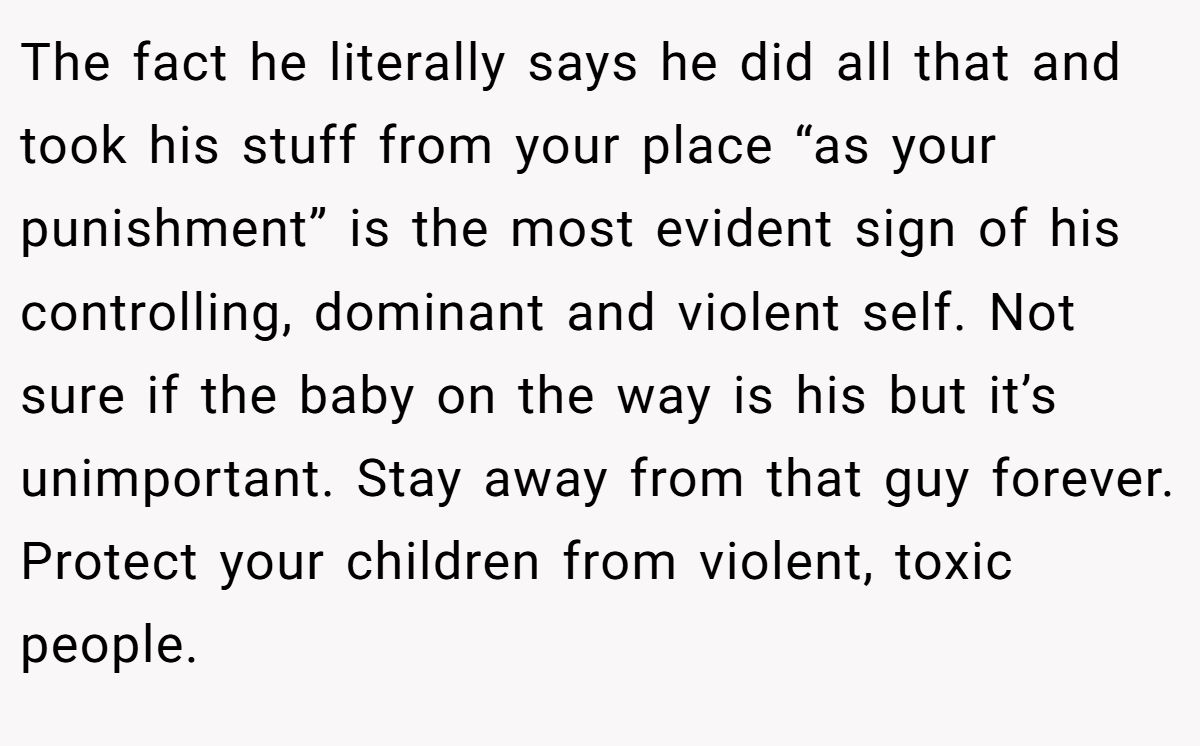 In this case, the boyfriend didn’t just disagree. He weaponized the moment. As PasionatelyRational and many others pointed out, his decision to take his belongings, leave the apartment unlocked, and punish his pregnant partner for not punishing her child reveals something deeper than a parenting conflict. It points to emotional manipulation.