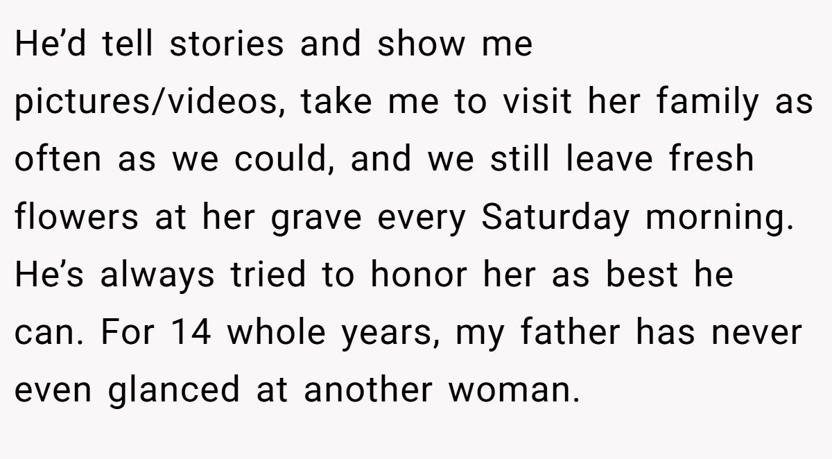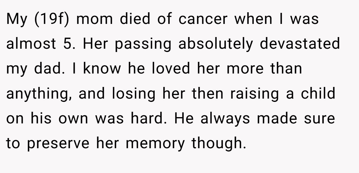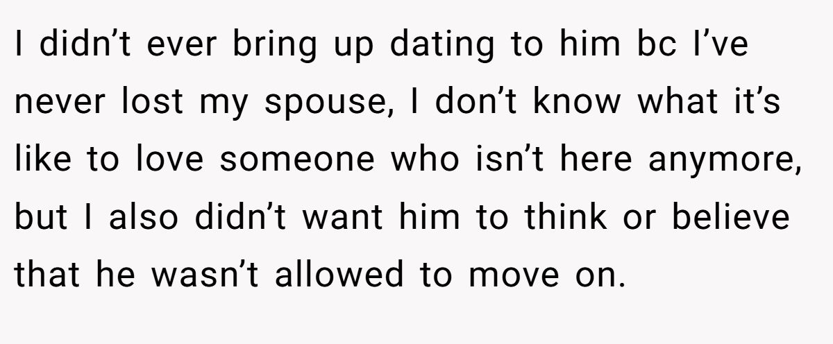 This isn’t just about moving on. It’s about honoring the past while embracing new opportunities. The Redditor’s dad has kept his late wife’s memory alive with photos, stories, and weekly visits to her grave.