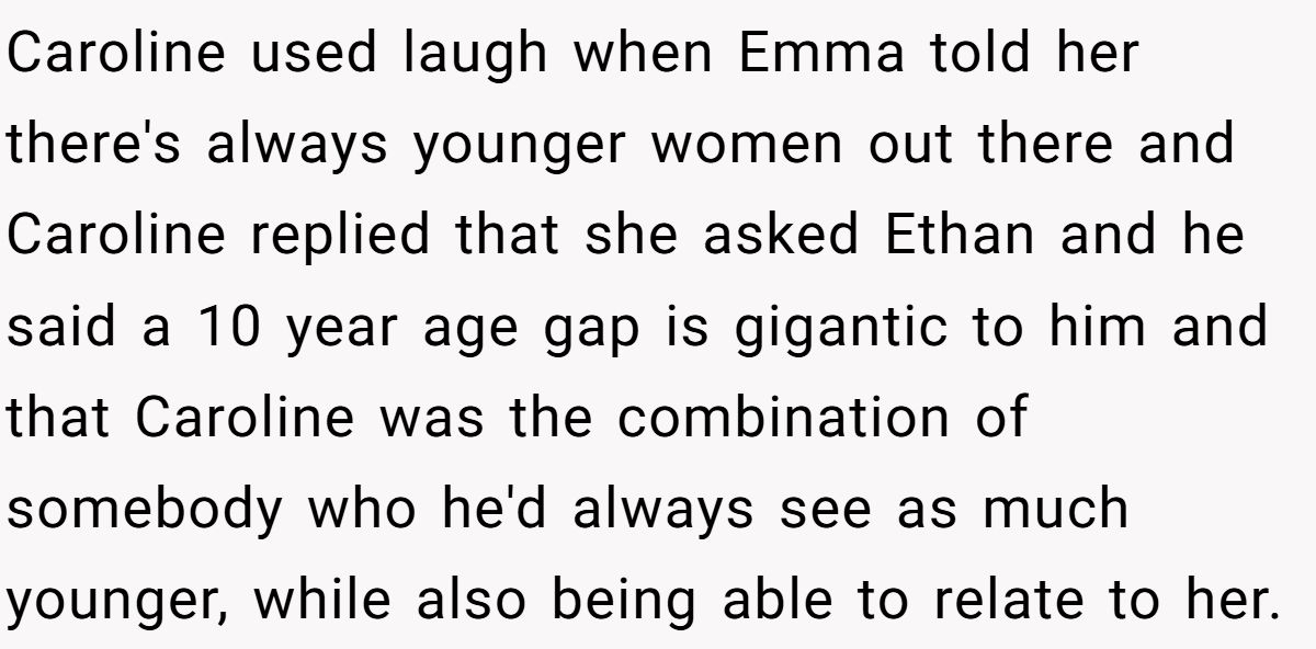 Caroline’s pain is real, but so is her history of rubbing it in. From mocking her stepdaughter’s mother to sneering at “bitter” age-gap critics, she seemed untouchable, until reality hit. Now she’s heartbroken, spiraling, and still trying to save face by mocking Ethan’s new girlfriend.