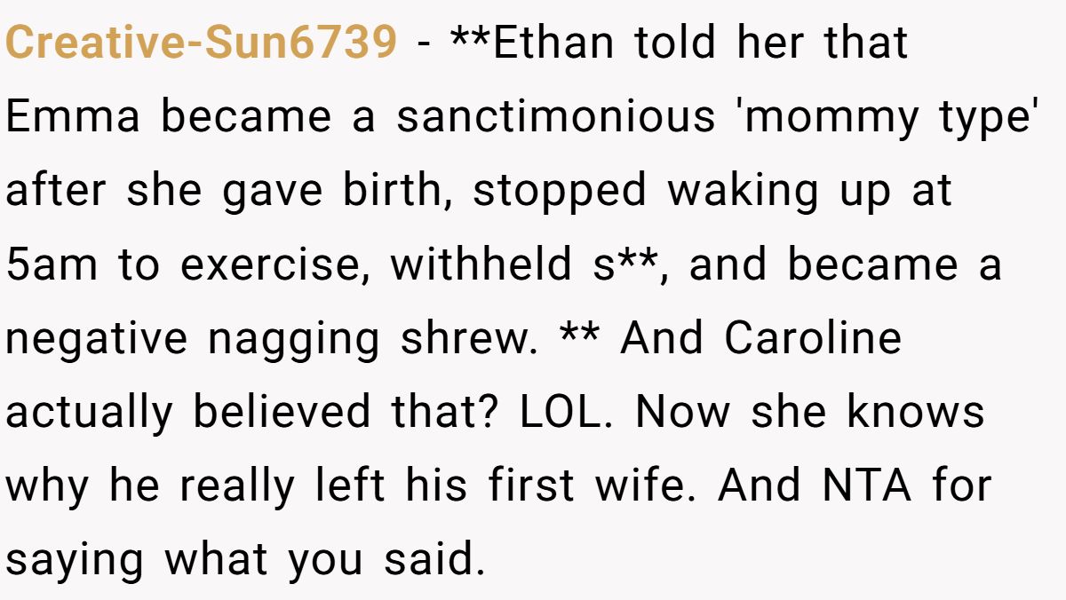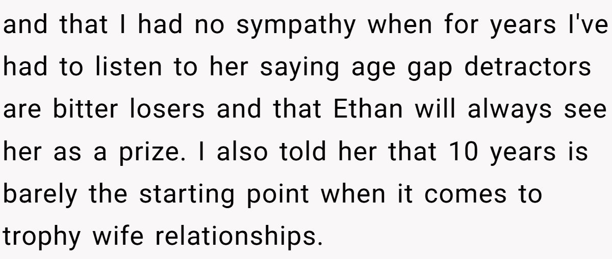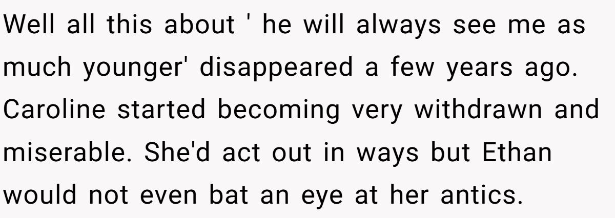 Navigating family drama can feel like tiptoeing through a minefield, and this Redditor just stepped on a big one. Caroline built her marriage—and much of her identity, on the idea that being 10 years younger than Ethan would always keep her in the “trophy wife” seat.