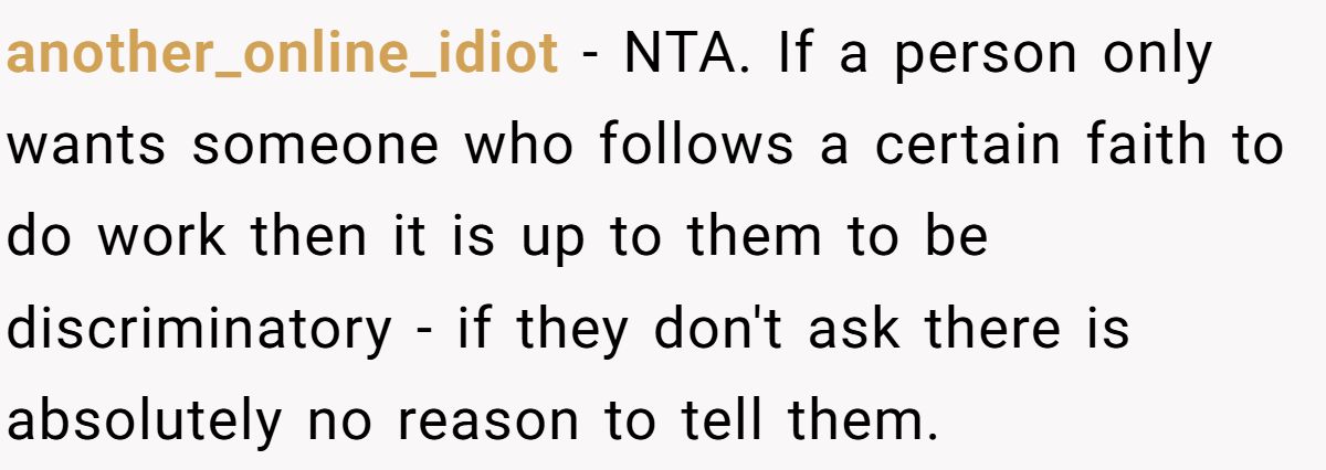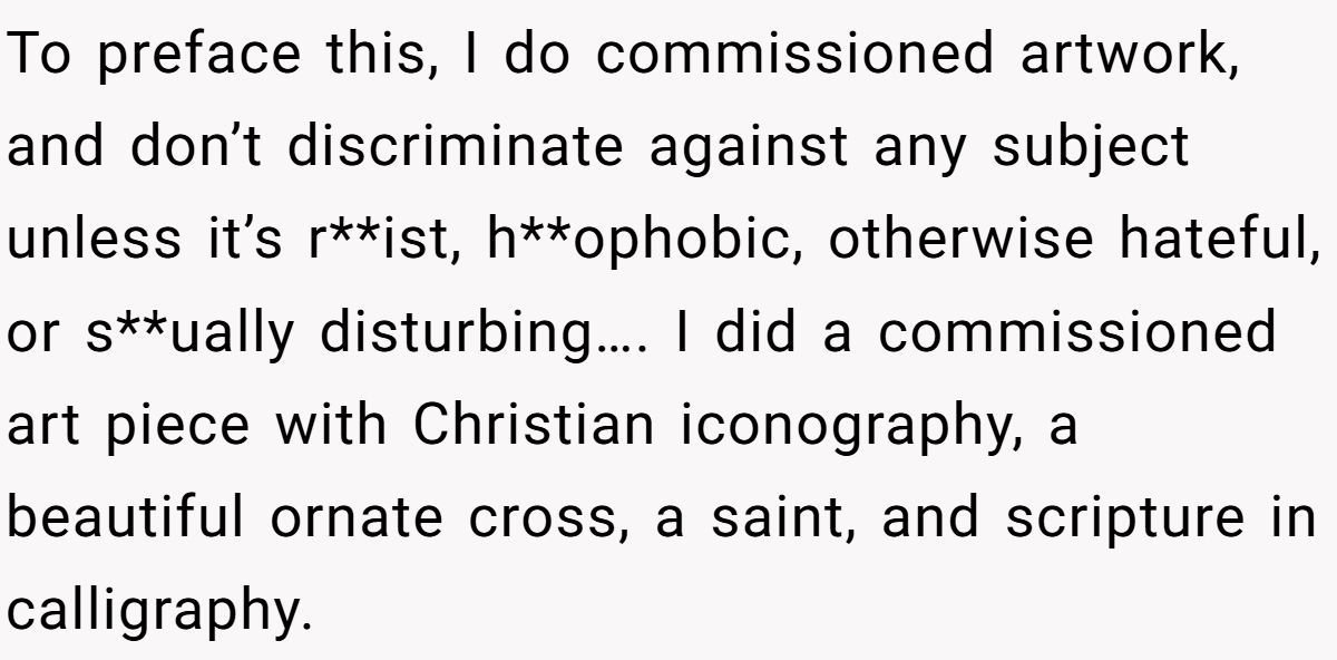 This group cheered the Redditor’s right to create without disclosing beliefs