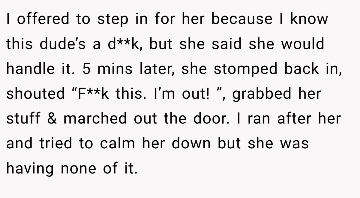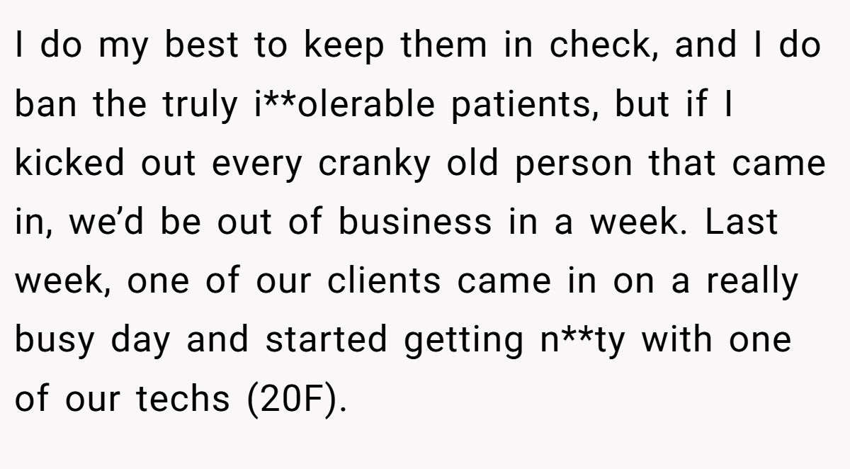 The 20-year-old tech didn’t just clock out — she imploded. In customer service, especially in healthcare, workers are often expected to smile through abuse with no real outlet. That day, she hit her emotional limit. Her boss, to his credit, offered immediate support: a break, a promise to deal with the problematic client, even flexibility to return later. She declined — not rationally, but emotionally, which is telling. She wasn’t quitting a job. She was rejecting a system that hadn’t protected her enough, early enough.