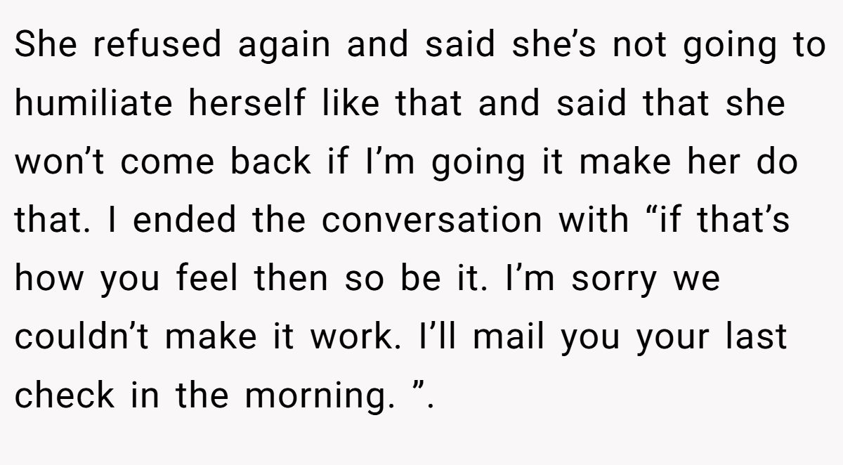 In the end, it’s a fine line between being a fair boss and being too tough. What would you have done in his place? Would you give her another chance—or let her go for good? Let us know what you think.