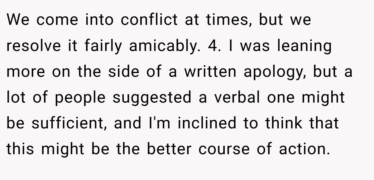 So was the apology request a smart way to rebuild trust, or just a step too much? Maybe a calm talk or a quick “I’m sorry” in person could’ve worked better. In some cultures, apologizing is seen as respectful. In others, writing one out feels more like punishment.