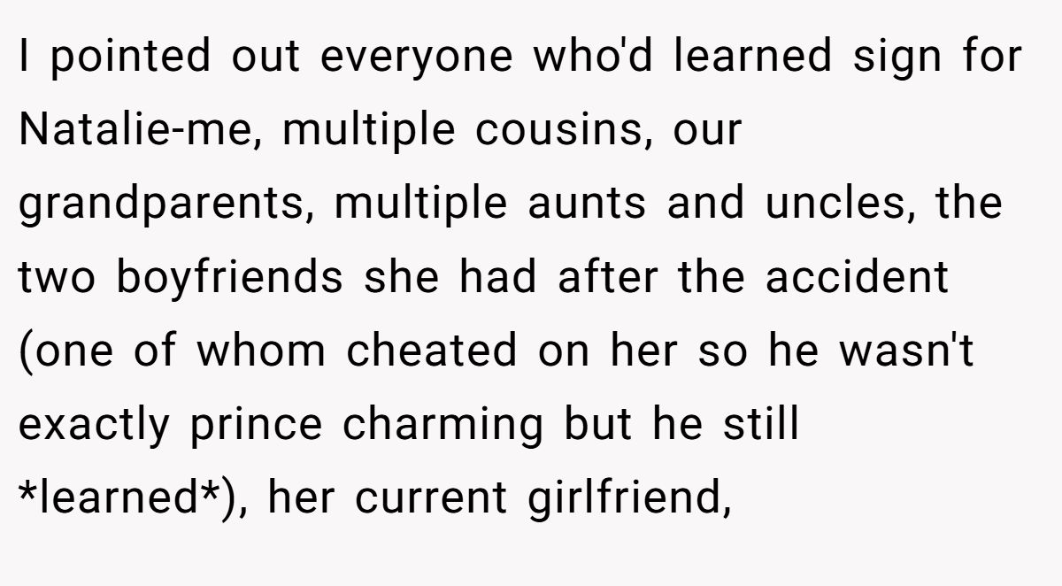 Even more jarring? The fact that ex-boyfriends and extended family did learn ASL. That’s what made this teenager’s outburst so powerful. It wasn’t just frustration—it was a long-overdue reckoning.