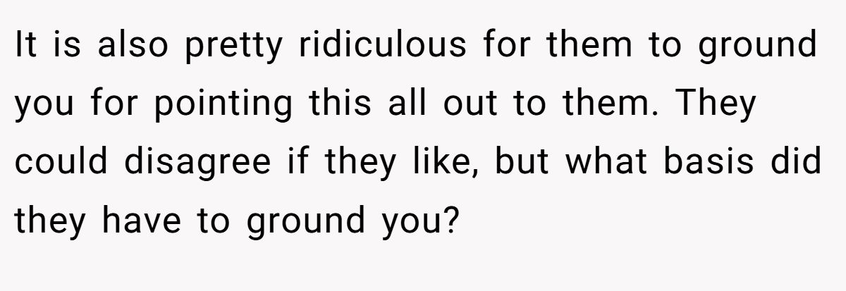 It is also pretty ridiculous for them to ground you for pointing this all out to them. They could disagree if they like, but what basis did they have to ground you?