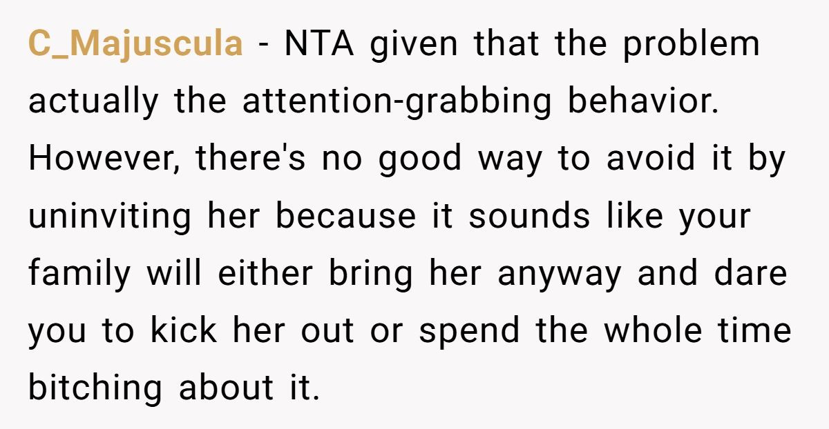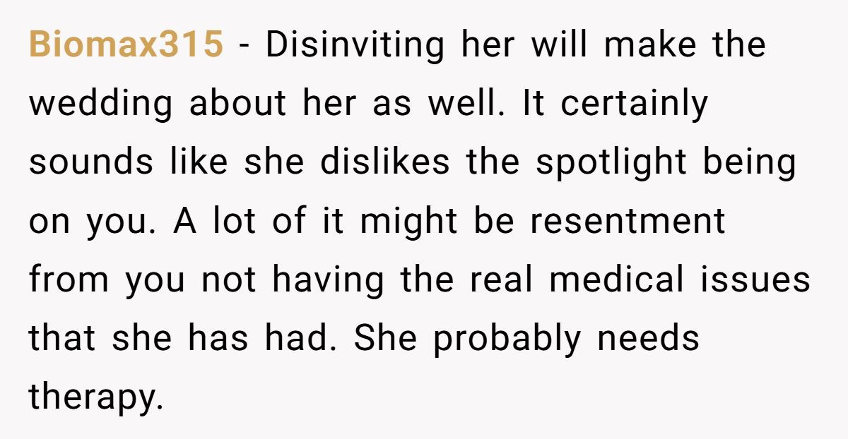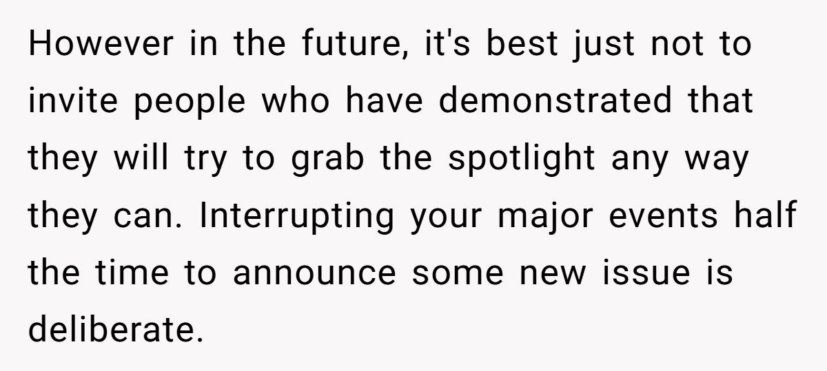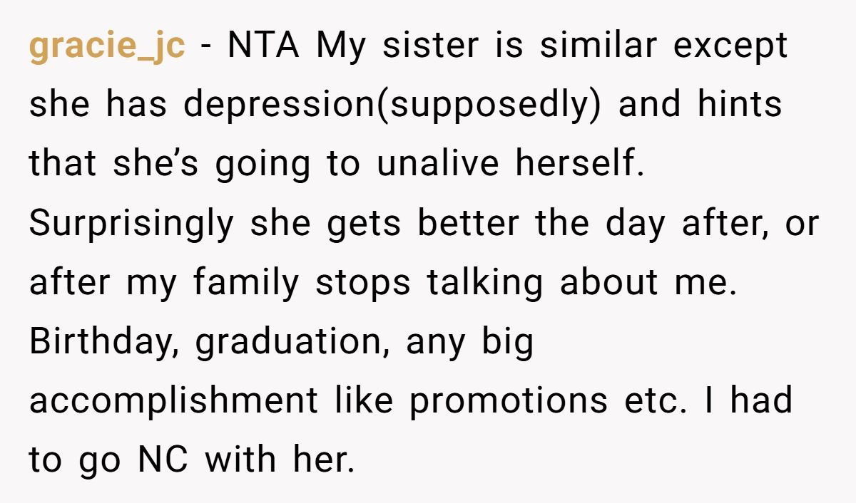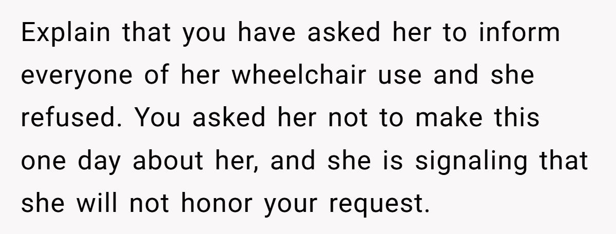 Most agreed: NTA. This isn’t about the wheelchair, it’s about your sister’s repeated pattern of stealing the spotlight. If it were a real health concern, she’d inform people ahead of time. Many believe she’s planning another dramatic moment.