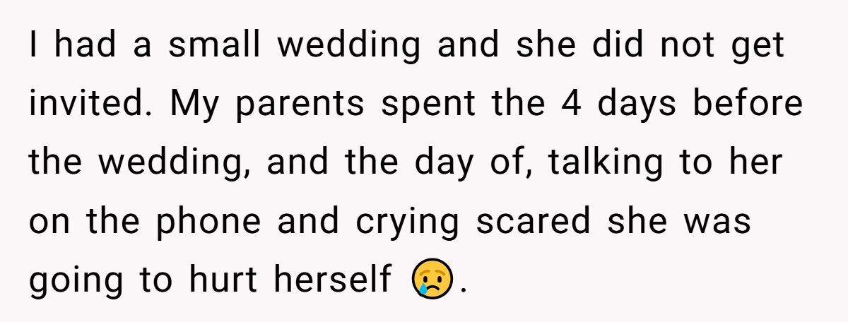 In that moment, the bride made a decision that had been building for years: she uninvited her sister.
