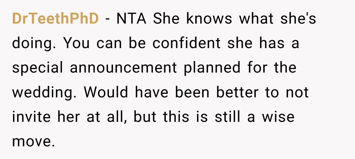 Could she have handled it more delicately? Maybe. Some Redditors suggested making a gentle announcement to guests ahead of time or having a private sit-down with Anna. But after years of feeling invisible, this bride chose the nuclear option and in her eyes, it was the only way she could finally be seen.