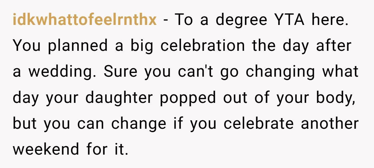 This commenter argued the SIL chose the wedding date near the birthday, so expecting OP to skip her daughter’s party is unreasonable