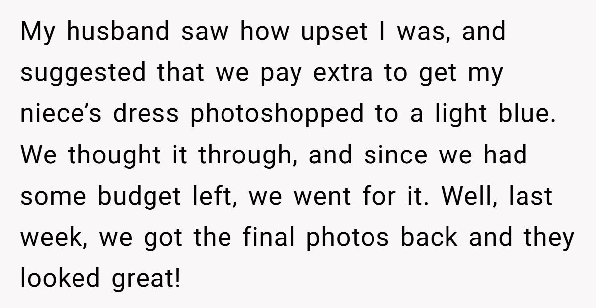 In the end, a dress color edit turned into a full-blown family feud—proving weddings aren’t just about love. They’re also a minefield of expectations, symbolism, and silent battles fought with Photoshop tools. The bride chose subtlety over drama, but was still met with accusations.