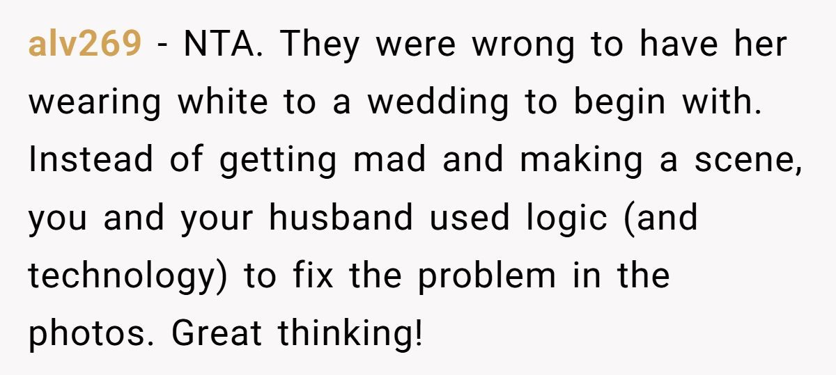 These Redditors suspected the white dress was a deliberate jab, justifying the bride’s edit as a classy counter-move
