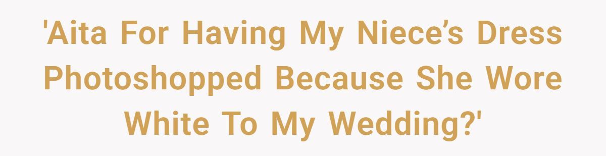 One bride’s joy turned to shock when her niece’s white dress stole the show, prompting a sneaky photo fix that sparked a family feud