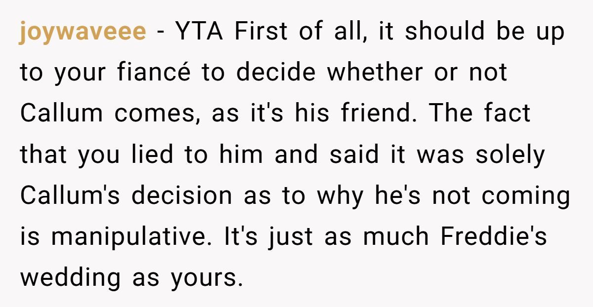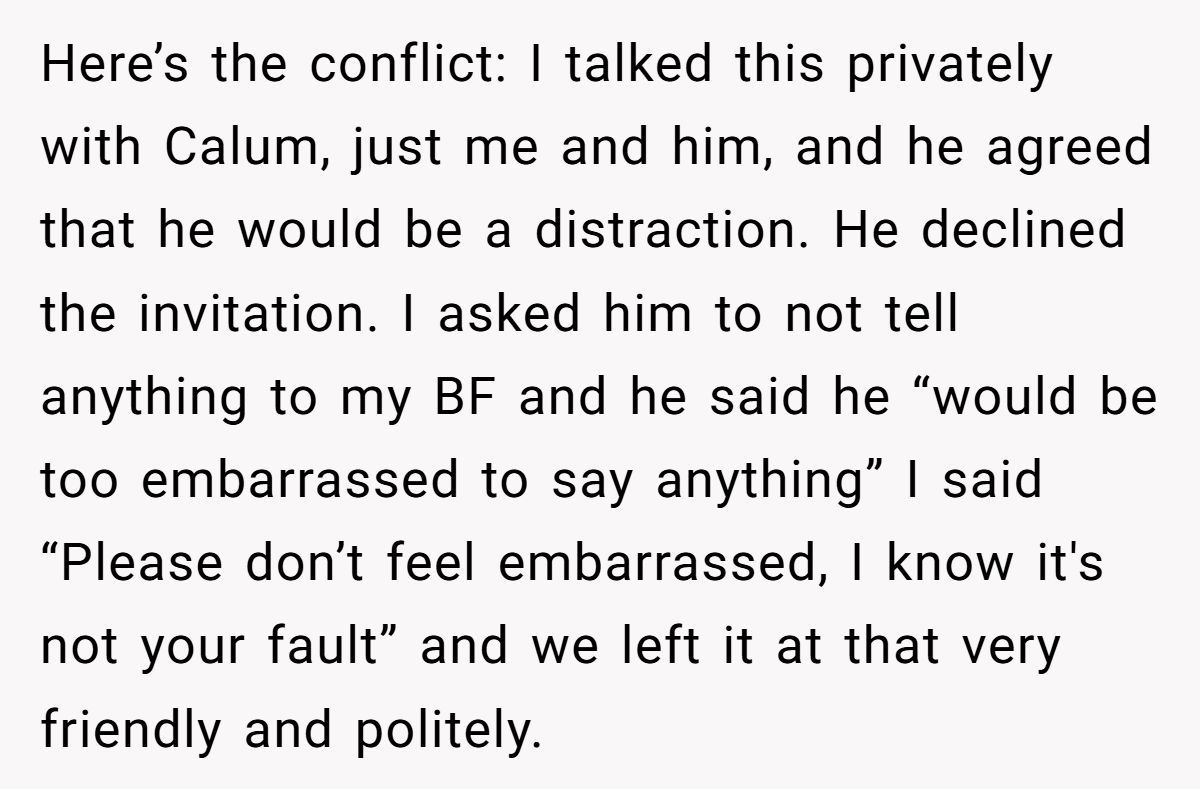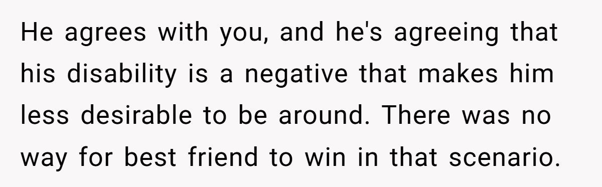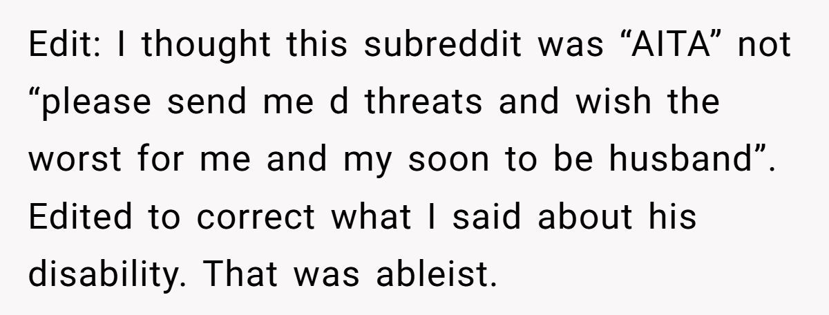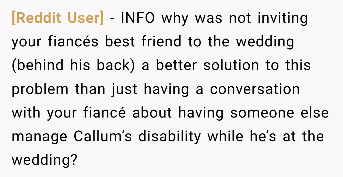 But after confronting the friend alone, asking him to stay home, and spinning the story to her fiancé that he simply declined the invitation, this Redditor is now questioning everything. Was she being reasonable or ableist? With the wedding plans paused and emotions running high, the story takes a sharp turn. Here’s what went down.