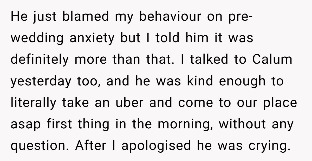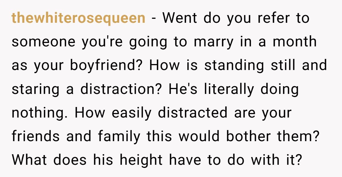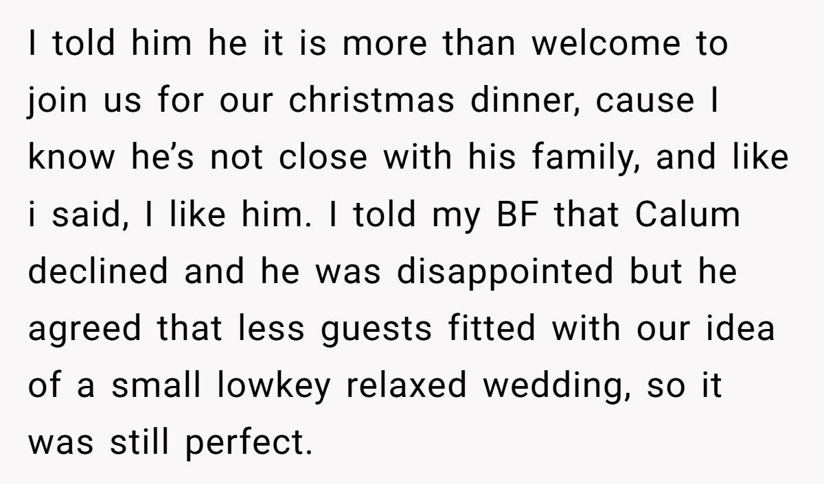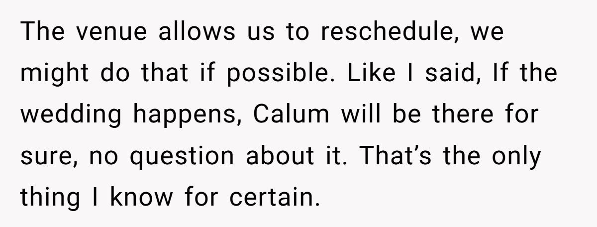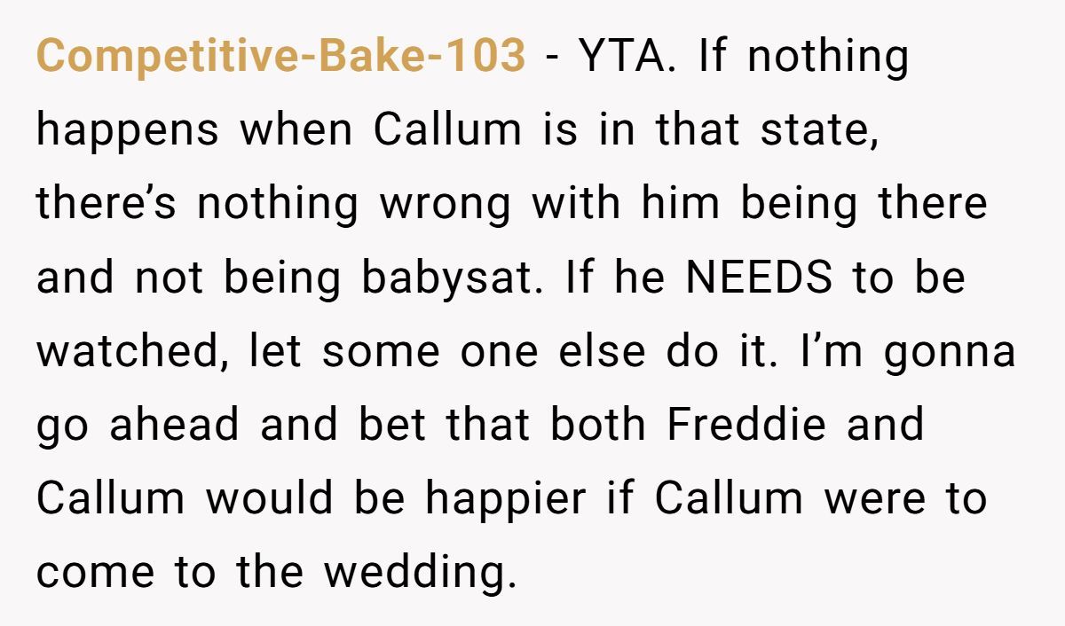 Users questioned why Calum’s stillness would disrupt the wedding, arguing aesthetics shouldn’t trump relationships