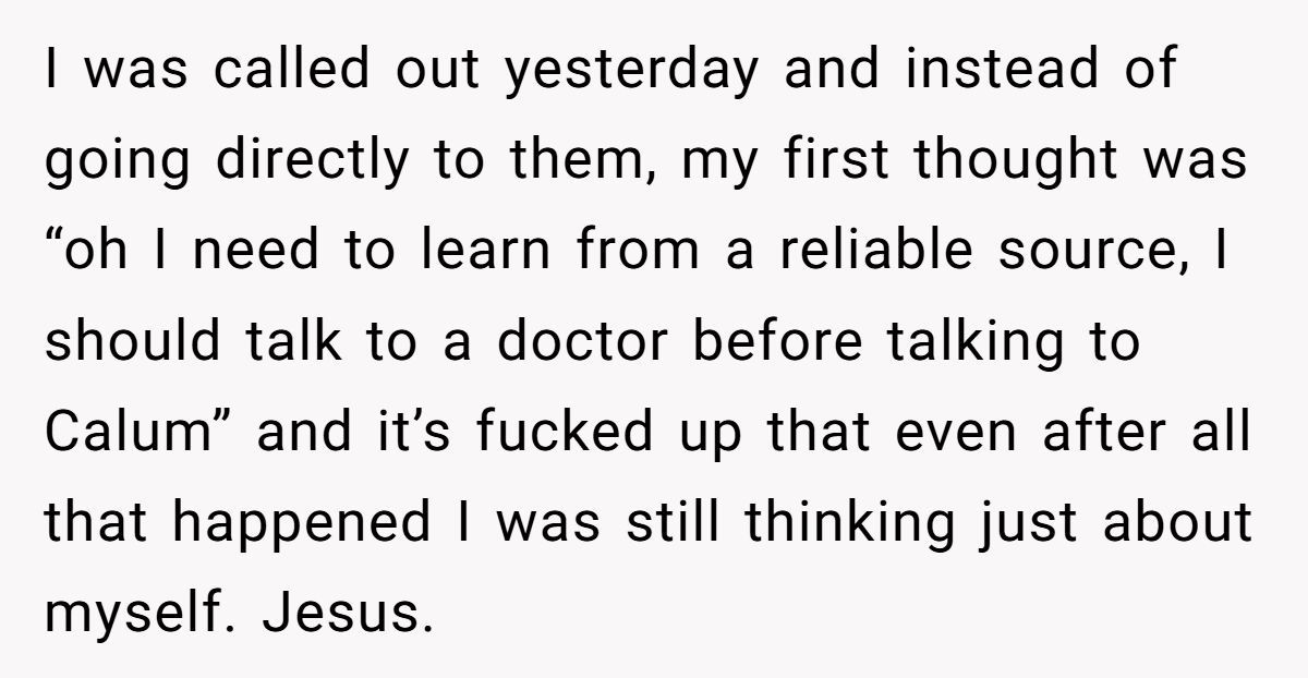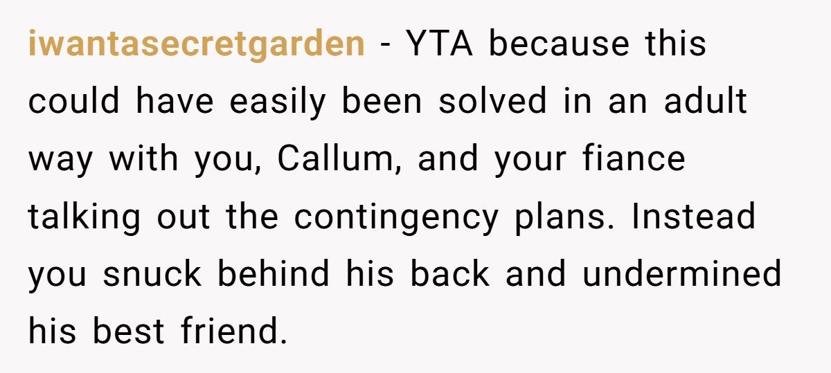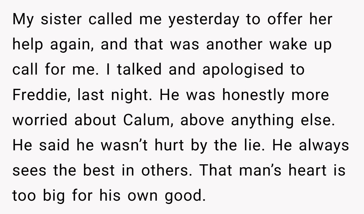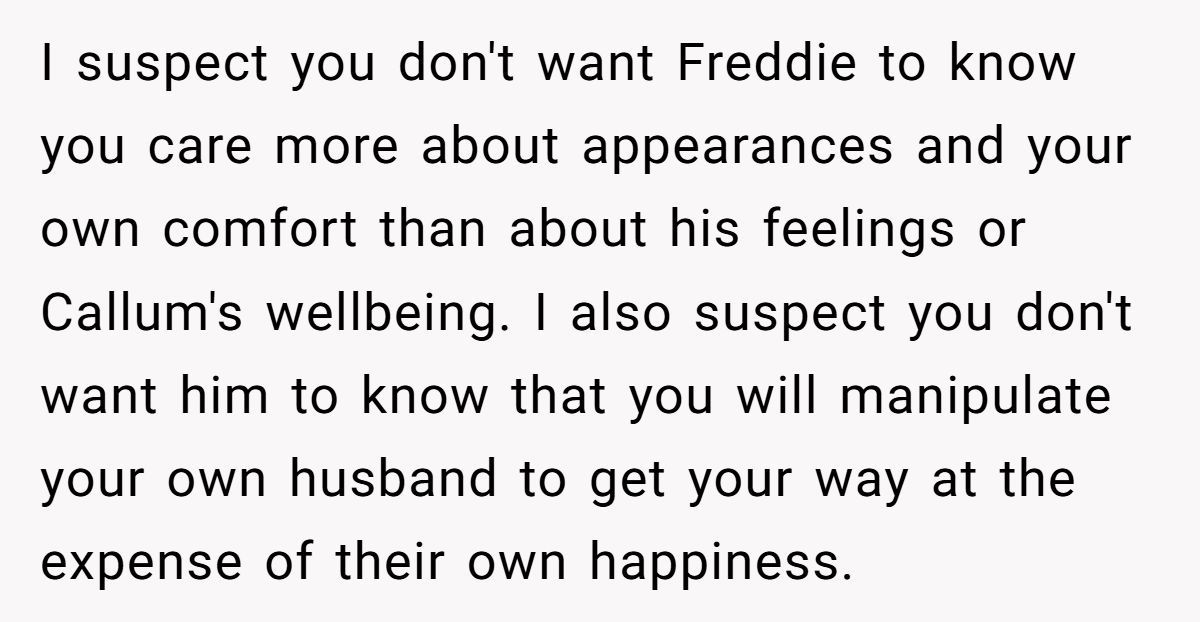 Commenters stressed she should have discussed solutions with Freddie and Calum, not excluded Calum behind Freddie’s back