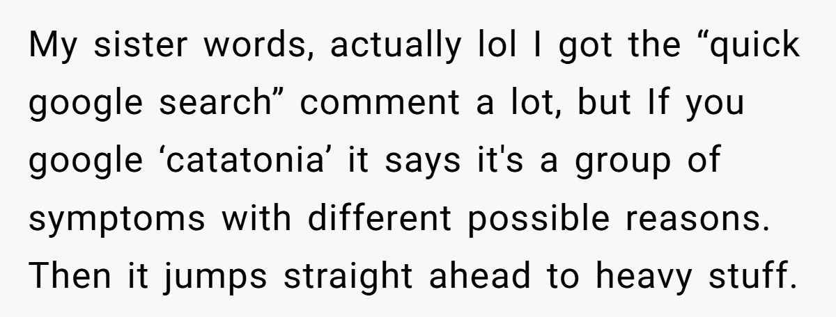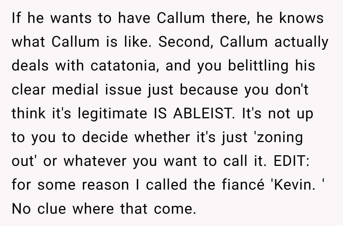 Commenters condemned her for dismissing catatonia as a “personality trait,” calling her exclusion of Calum ableist and hurtful