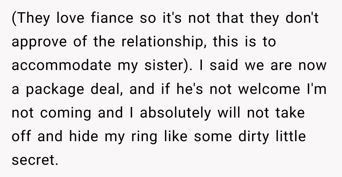 OP didn’t just say no to hiding a ring. She said no to a lifetime of emotional erasure. She may not get the perfect birthday dinner with Mom. But she protected her future marriage—and that might be the most important vow she ever keeps.