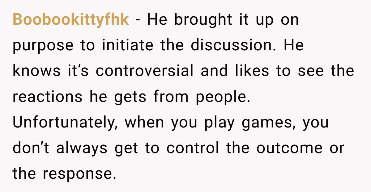 What could have been a teachable moment instead sparked a mini office cold war. Bob retreated into quiet sulking, while the poster tried to make peace with the accidental offense. Was the laughter cruel? Perhaps. But as many Redditors noted, when someone chooses a political identity purely for shock value, they shouldn’t be surprised by honest reactions.