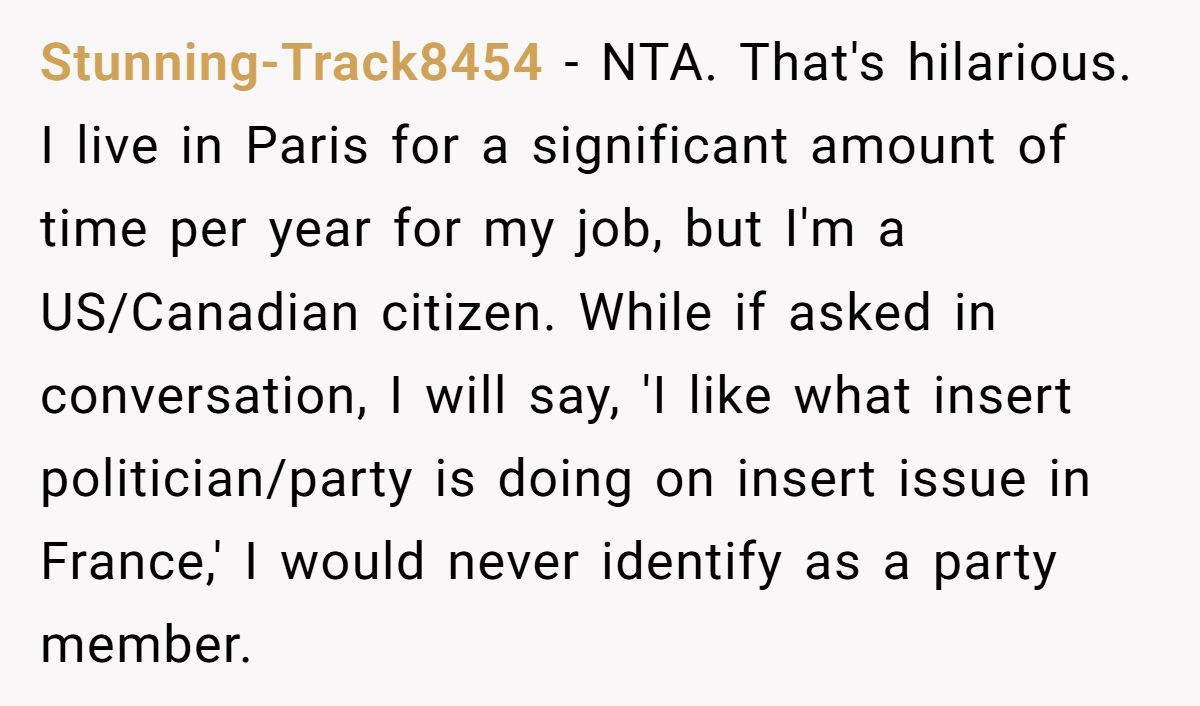 But one thing’s clear: aligning with a foreign political movement, without context or participation, might get you some side-eyes—and a viral Reddit post to boot. Would you have laughed too? Or kept it professional? Share your thoughts in the comments!