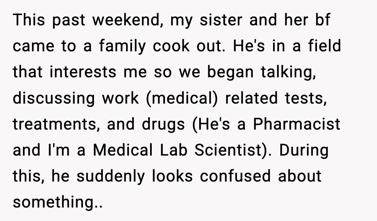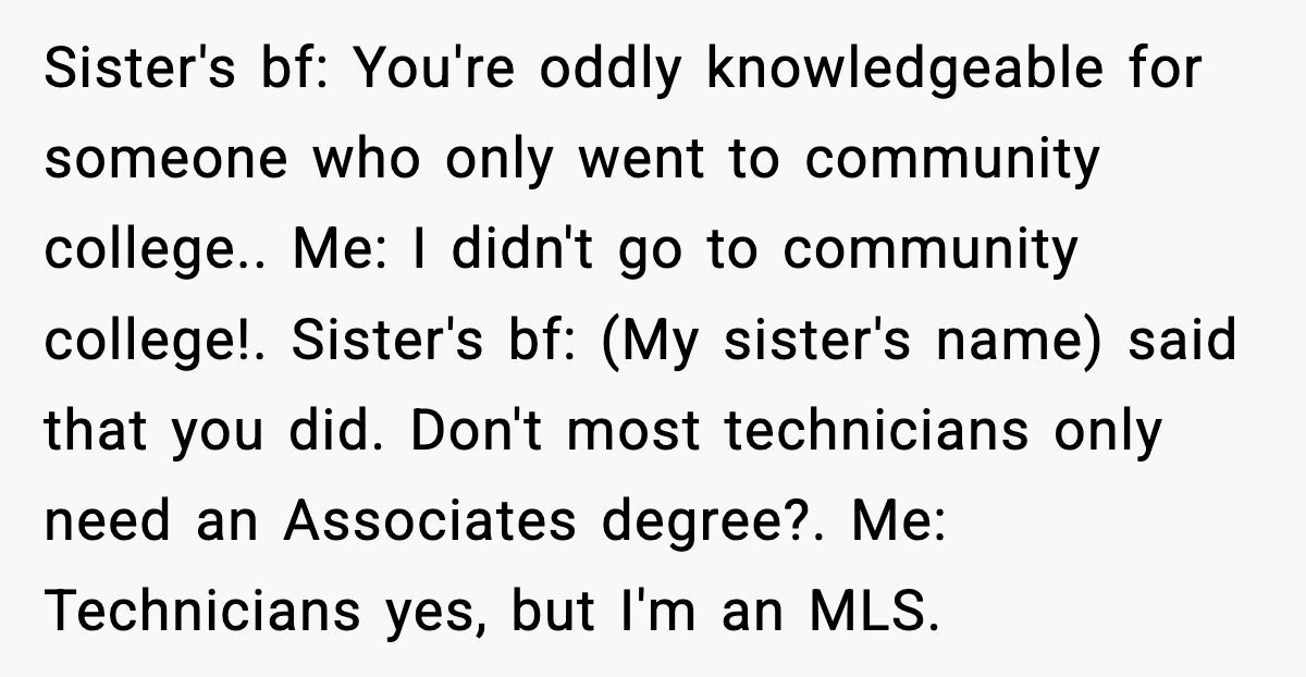One woman’s chat with her sister’s boyfriend at a family cookout took a wild turn when she corrected his misconceptions about their educations