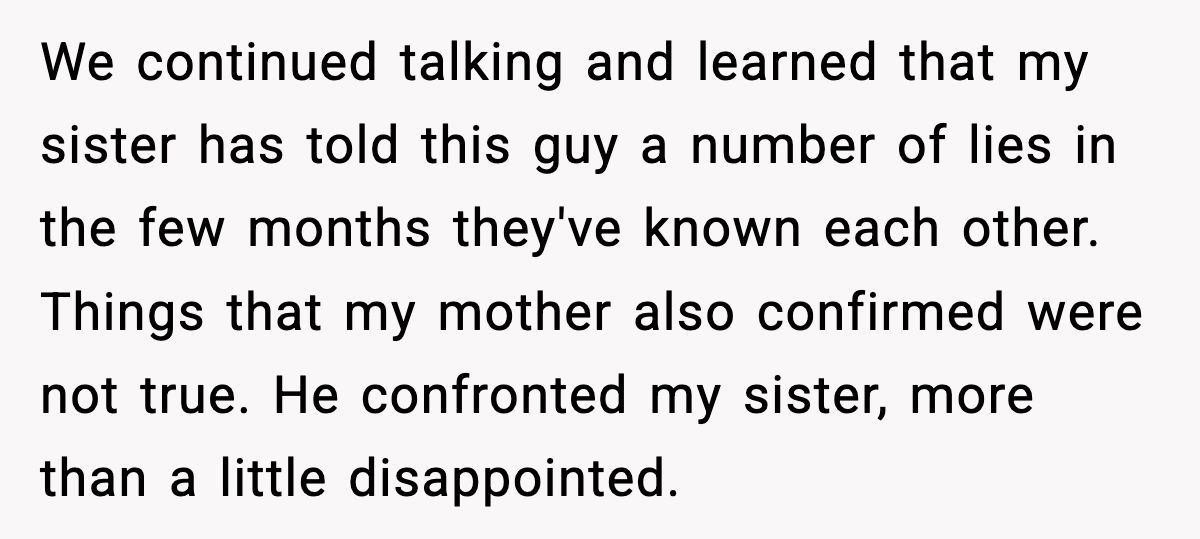 This commenter found it strange the sister lied about both herself and the OP, questioning the deeper motive.