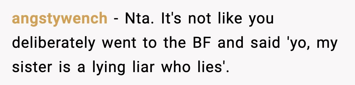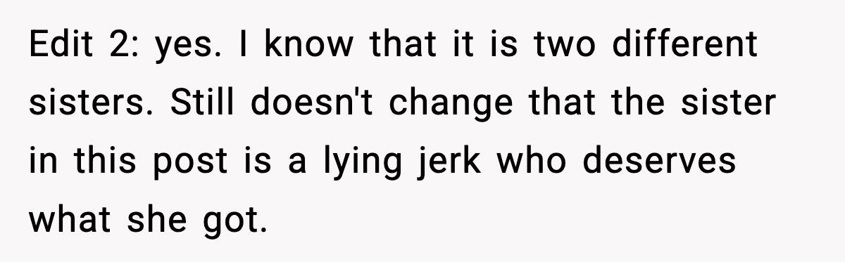 One Reddit user said OP wasn’t trying to ruin anything—she just got caught in a web her sister spun.