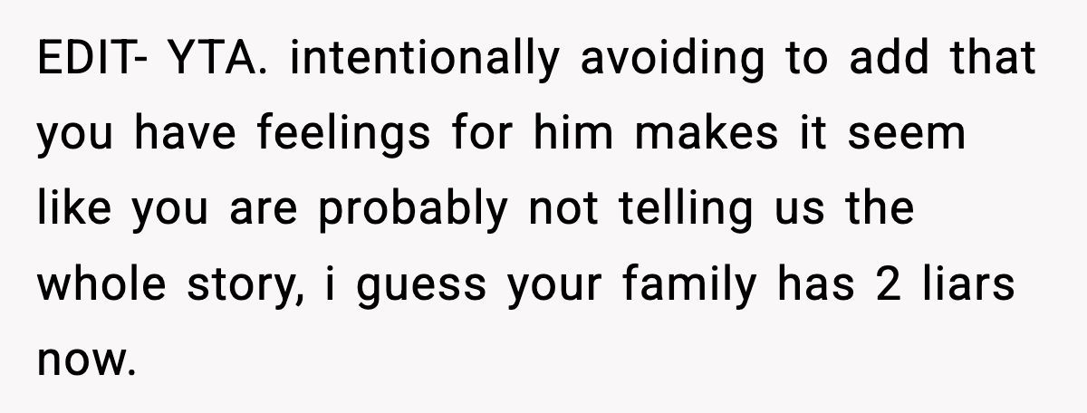 The same user flipped their stance later, pointing out that OP’s own omission of past feelings made the story feel shady.